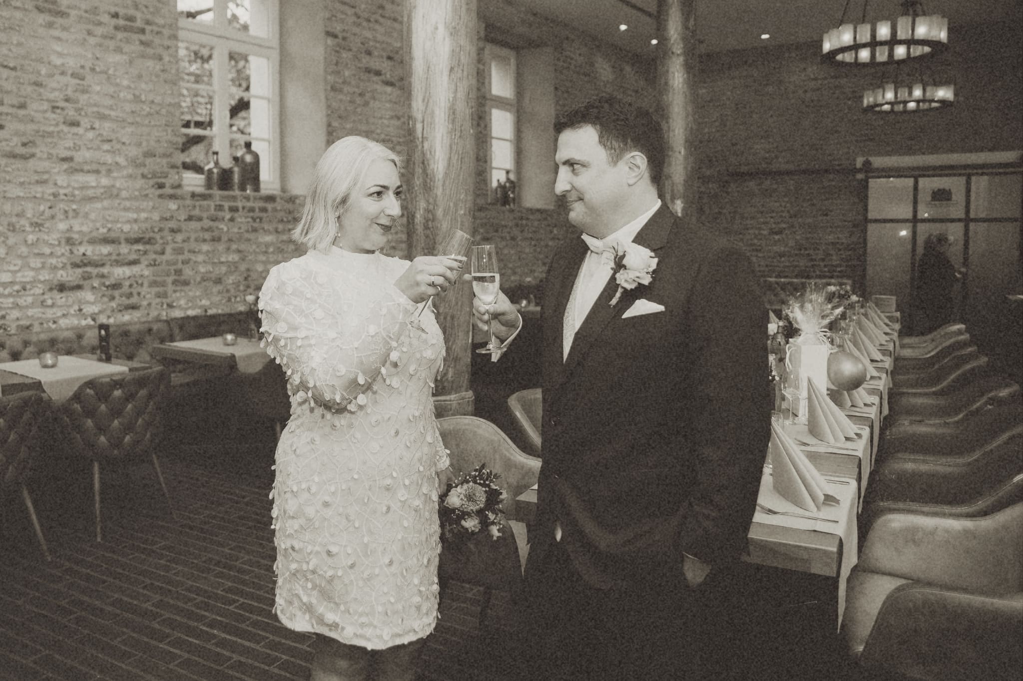 Darauf haben wir alle gewartet! Genießt einen Aperitif und schafft mit ein paar Häppchen eine erste Grundlage für weitere Getränke, während Frau und Mann (Moment, wir?) im Park ein paar Fotos schießen und sich dann wieder zu euch gesellen.